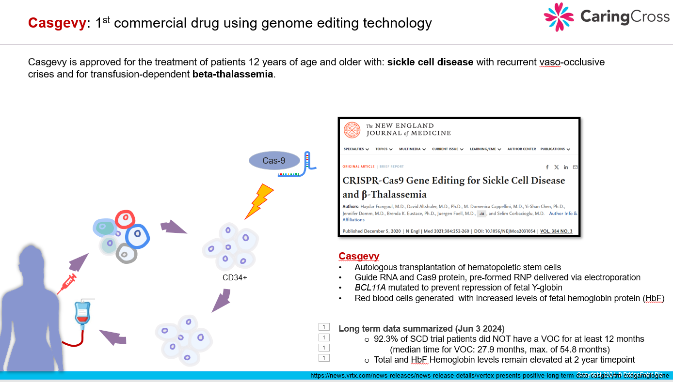 Casgevy is the only gene editing drug available on commercial markets. I will present some early commercial information that Vertex has released. Then I will explore the challenges for broad patient access to this therapy.