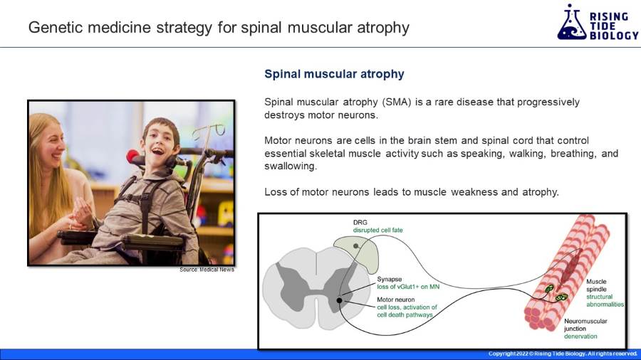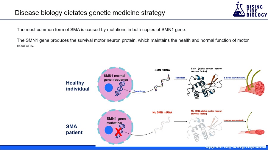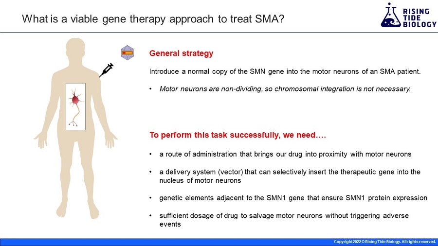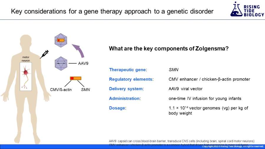 Zolgensma is an AAV9 based gene therapy that delivers the missing gene, SMN, into the target cells, motor neurons.
